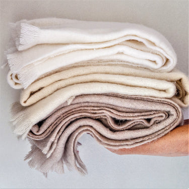 Throws seldom require cleaning unless there is a spill / stain. Dry cleaning is preferred but you can wash with a mild wool-friendly detergent in lukewarm water. Gently rub stained areas to remove marks. To dry, place on a flat surface and do not hang out to dry. Mohair dries quickly. DO NOT tumble dry.